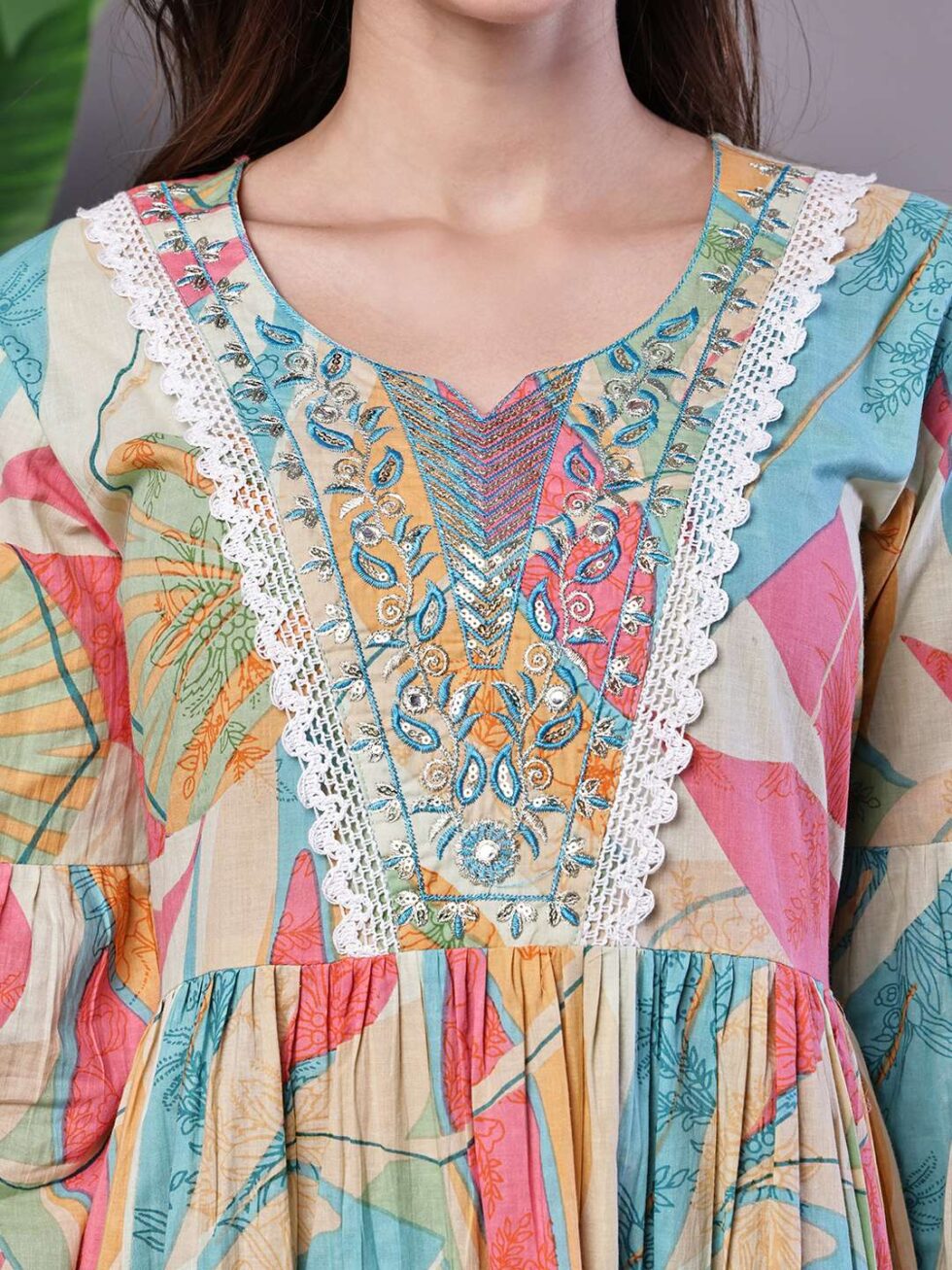 Be the first to review “Wome’s Multicolor Printed Cotton A-Line Dress with Embroidered Yoke Midi Dresses”
